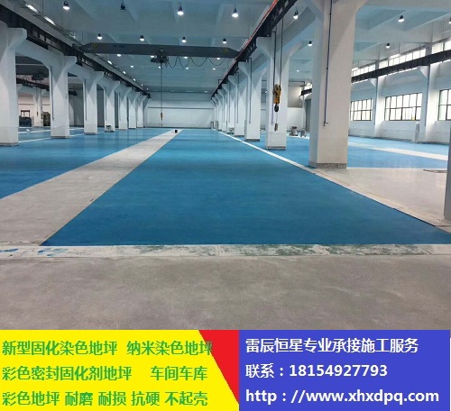2、混凝土納米染色地坪的顏色是極細微彩色粒子產(chǎn)生的,材料本身為半透明色,不同於普通環(huán)氧樹脂地坪的覆蓋成膜性。不具有普通環(huán)氧樹脂地坪顏色均一性。